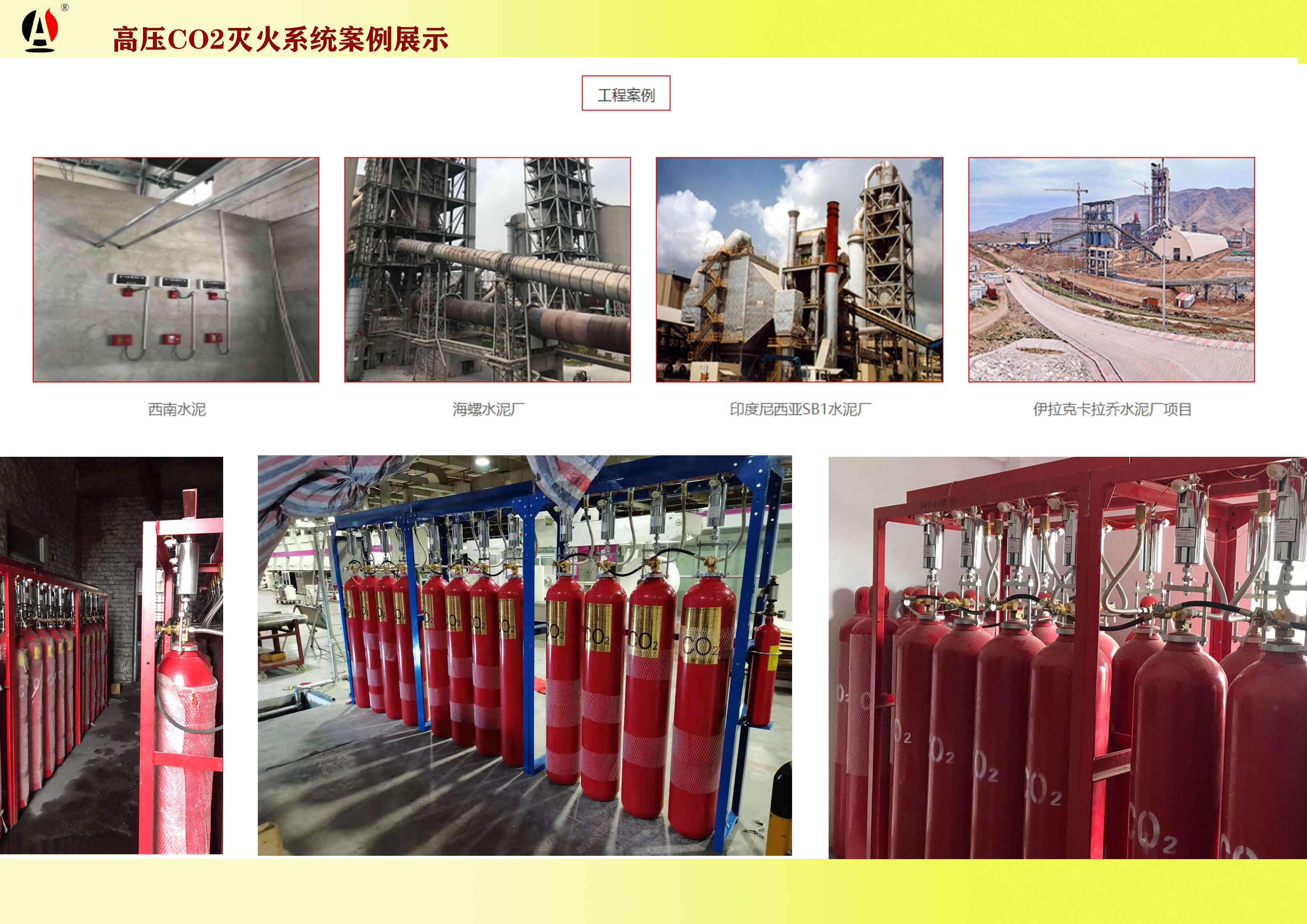 二氧化碳滅火系統(tǒng)由滅火劑儲(chǔ)存瓶組、稱重裝置、液體單向閥、連接管、集流管、安全閥、壓力信號(hào)器、驅(qū)動(dòng)氣體儲(chǔ)存瓶組、氣體單向閥、選擇閥、管網(wǎng)、噴頭及自動(dòng)滅火控制器等部件組成。